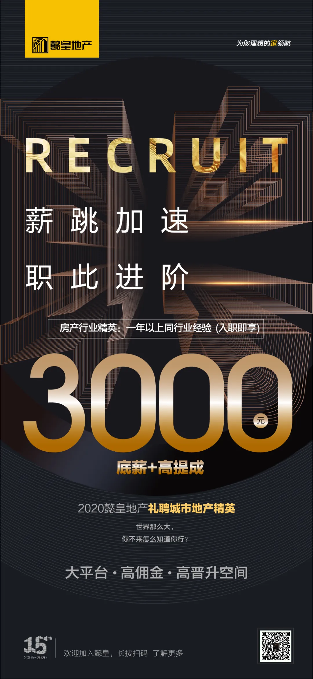 招聘福利①:同行业1年以上经验者,享3000底薪+高提成;